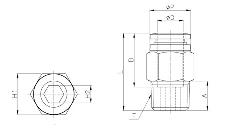 | MODEL | ¢D | ¢P | T | L | A | B | H1(Hex) | H2(Hex) | ORIFICE | WEIGHT(g) | BOX(EA) |