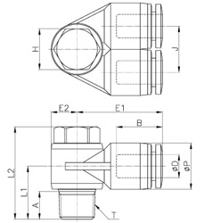 | MODEL | ¢D | ¢P | T | L1 | L2 | J | E1 | E2 | A | B | H(Hex) | ORIFICE | WEIGHT(g) | BOX(EA) |