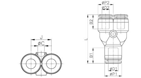 | MODEL | ¢D1 | ¢D2 | ¢P1 | ¢P2 | L | J | ¢C | B1 | B2 | ORIFICE | WEIGHT(g) | BOX(EA) |