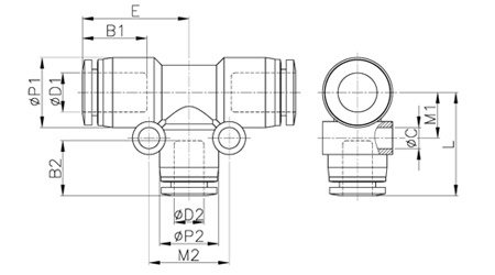 | MODEL | ¢D1 | ¢D2 | ¢P1 | ¢P2 | L | E | ¢C | B1 | B2 | M1 | M2 | ORIFICE | WEIGHT(g) | BOX(EA) |