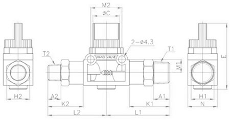 | MODEL | T1 | T2 | H1(Hex) | H2(Hex) | ¢C | N | E | A1 | A2 | K1 | K2 | L1 | L2 | M1 | M2 | WEIGHT(g) | BOX(EA) |